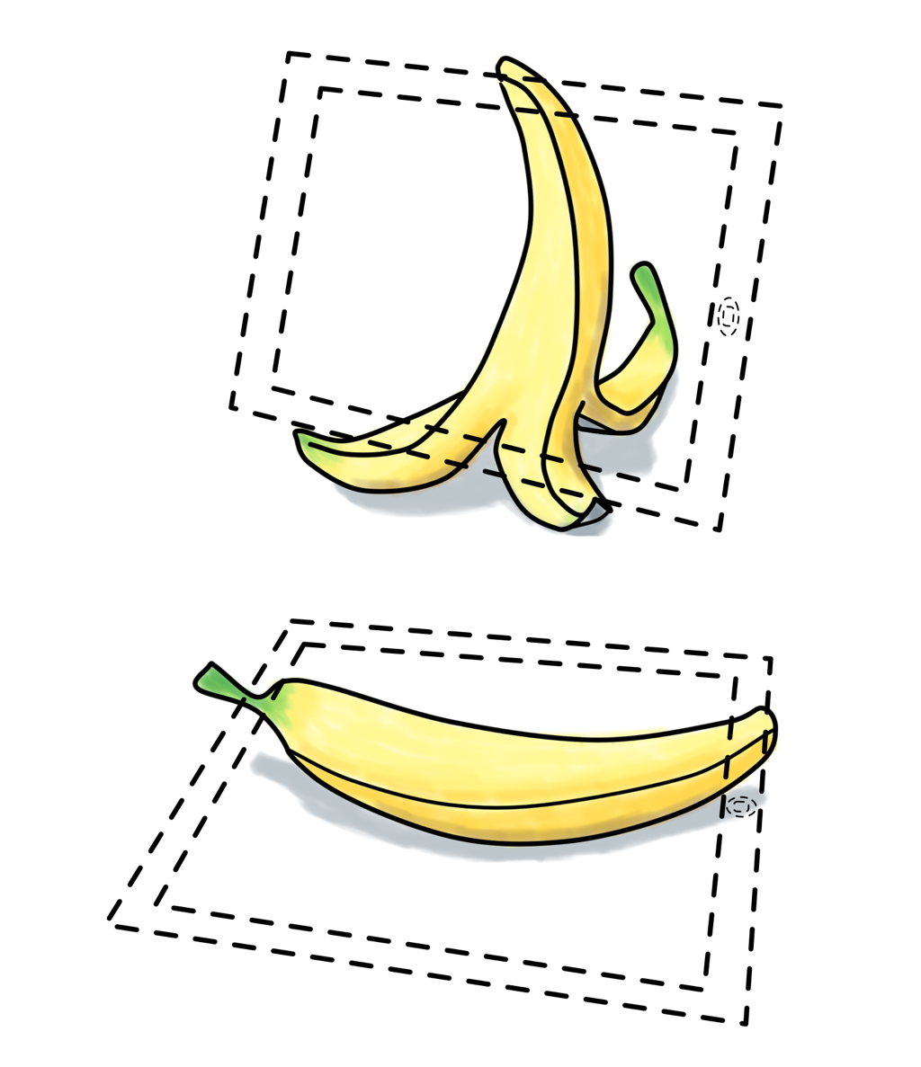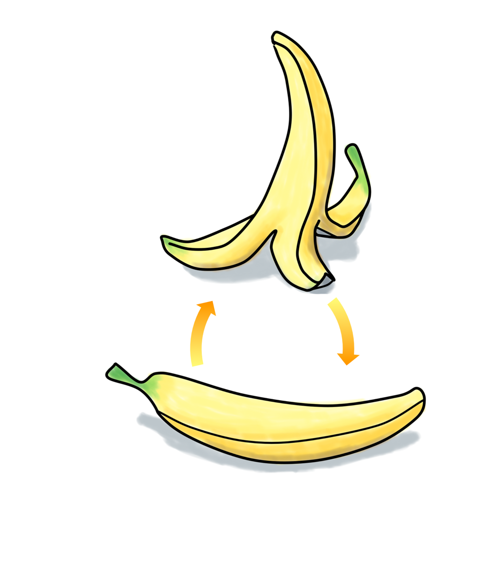 어느 날 바나나를 먹다가 벗긴 껍질 모양을 보고 문뜩 이런 생각을 했습니다. ‘이걸 거꾸로 세우면 뭘 받칠 수도 있겠다.’ 이렇게?