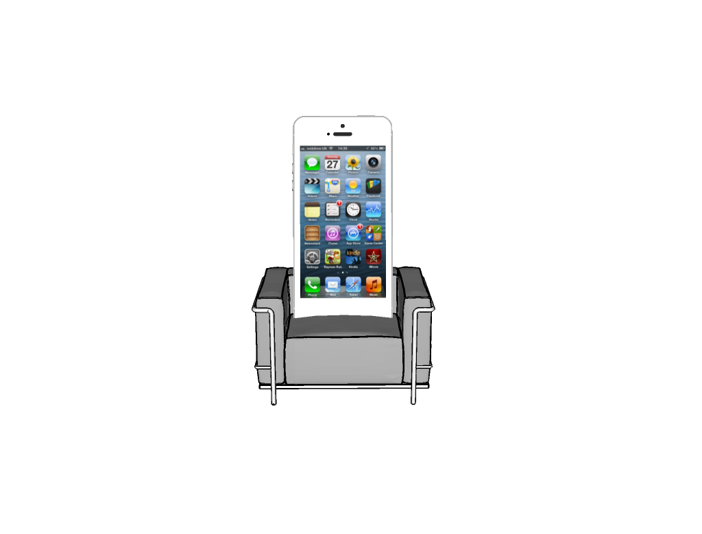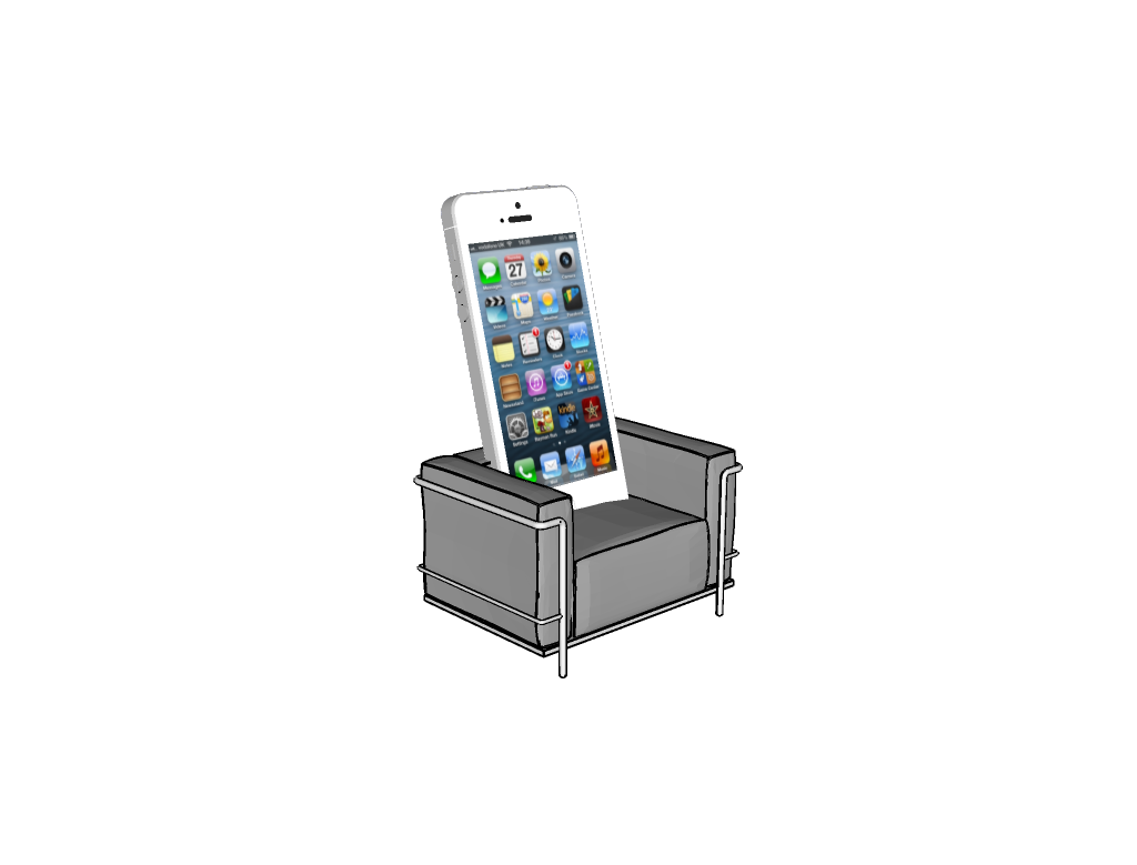 문득 이런 생각을 했습니다. 이 소파의 미니어처를 아이패드 스탠드로 만들면 괜찮겠다는. 스티브 잡스의 아이패드에 대한 오마주랄까. 그런데 아이패드 미니로 하더라도 미니어처 가로 길이가 무려 30센티는 돼야 올려놓을 수 있겠더군요. 그 정도는 미니어처라기 그냥 작은 의자 정도 사이즈가 될 것 같습니다. 그래서 아쉽지만 한 10센티 정도 크기로 아이폰을 올려놓을 수 있는 스탠드 컨셉을 스케치업(SketchUp)으로 간단히 그려봅니다.