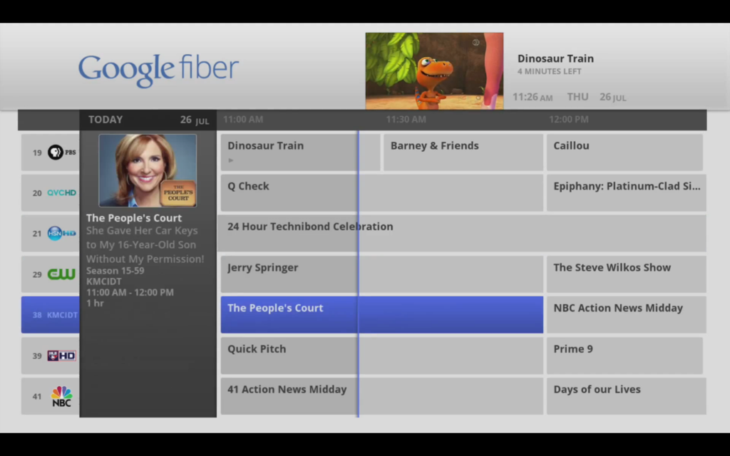 실제 구글 파이버 TV 서비스는 어떤 모양일까요? 캔자스 시티에서만 설치가 되기 때문에 미국에서도 꽤나 궁금한 모양입니다. BTIG 리서치라는 곳에서 직접 캔자스 시티에 가서 설치된 구글 파이버 TV의 스틸 컷을 찍어 유튜브에 올렸더군요. 하지만 이미 지난 7월에 구글에서 직접 구글 파이버를 소개하고 데모한 적이 있습니다. 이를 통해 구글 파이버 TV의 UI와 대략의 서비스 시나리오를 엿볼 수 있습니다. 결론부터 먼저 말하자면, 구글 파이버 TV 서비스에는 특별한 것은 없습니다. 시장에서 충분히 예측 가능한 시나리오를 충실히 구현해 놓고 있습니다. 잠깐 살펴보도록 하죠.