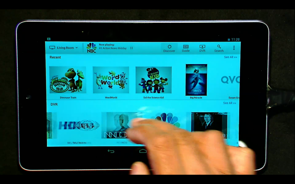 지나치게 전형적 모양의 기본 블루투스 리모트 외에, 앞서 얘기했듯, 넥서스 7이 기본 옵션으로 포함되어 있습니다. 이를 통해서 EPG/탐색기, 검색, DVR 제어, 소셜네트워크 등의 기능을 제공합니다. 물론 음성 검색도 포함되어 있습니다. 태블릿 자체로도 TV 컨텐트를 볼 수 있는 동시 멀티스크린 기능도 제공합니다.