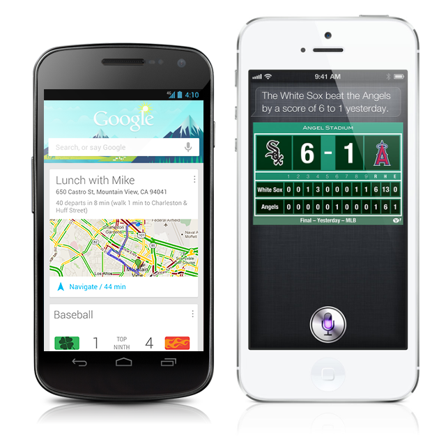 구글 나우(왼쪽)와 애플 시리(오른쪽)